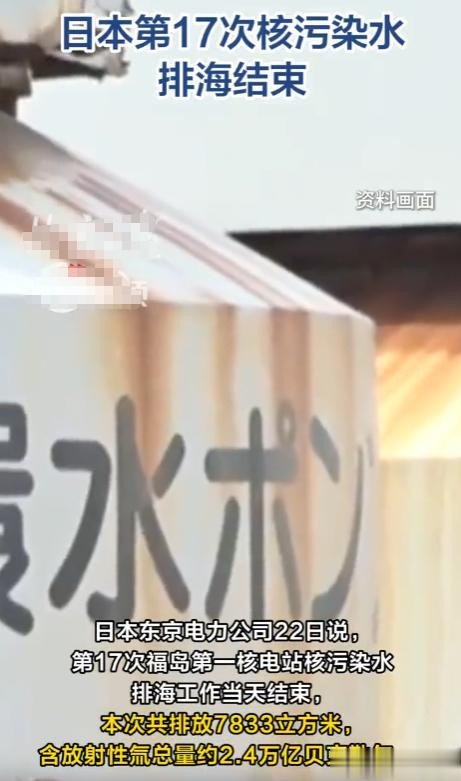 前一天刚落幕的福岛第一核电站第17次核污染水排海,又往太平洋里倒了7833吨含氚2.4万亿贝克勒尔的核污染水。