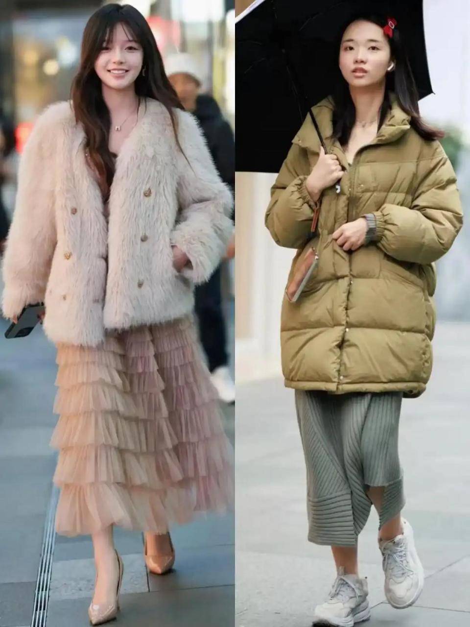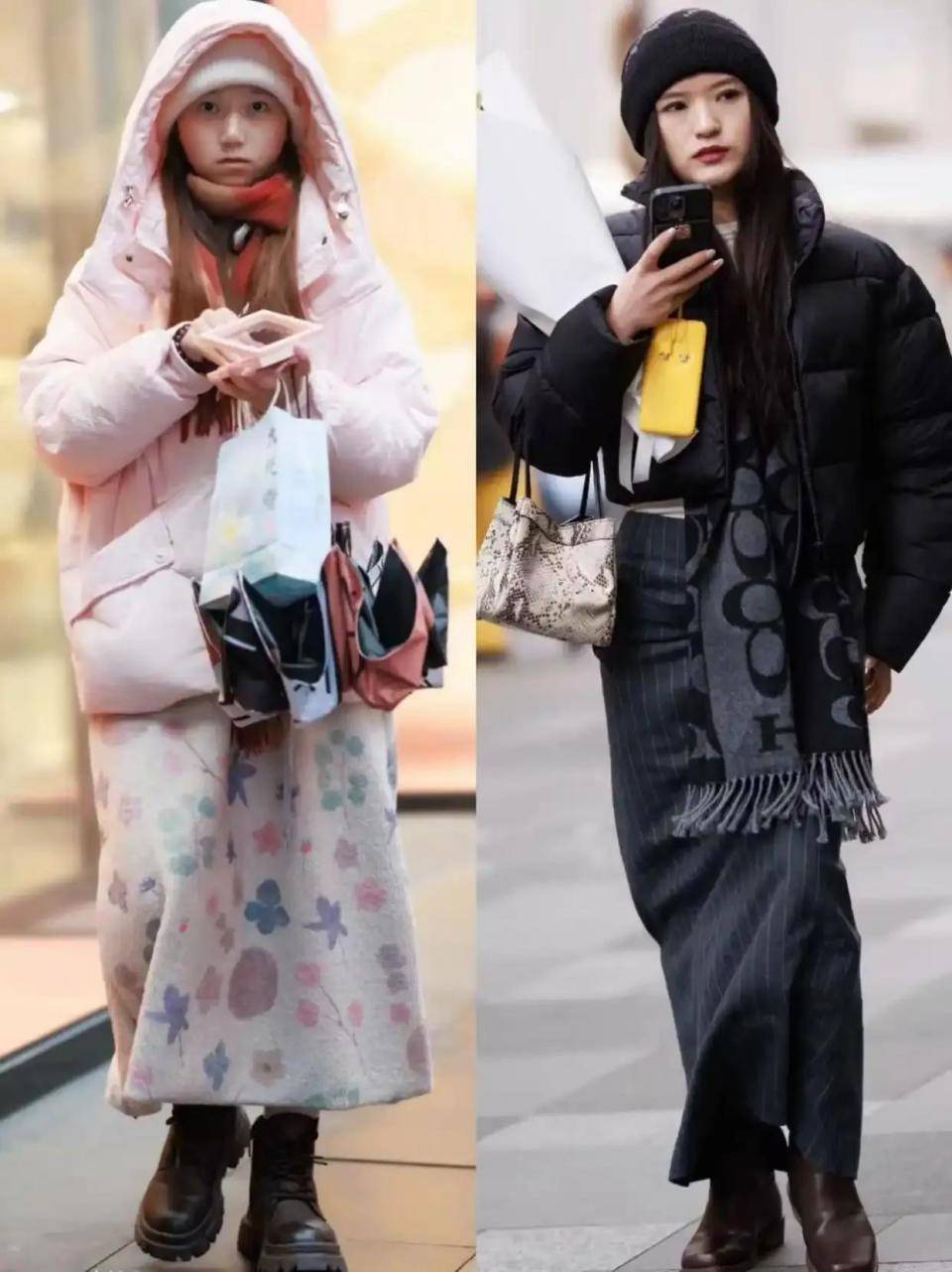 第二章节,羽绒服搭配半身裙,保暖舒适Tips①:羽绒服这么穿更 fashion