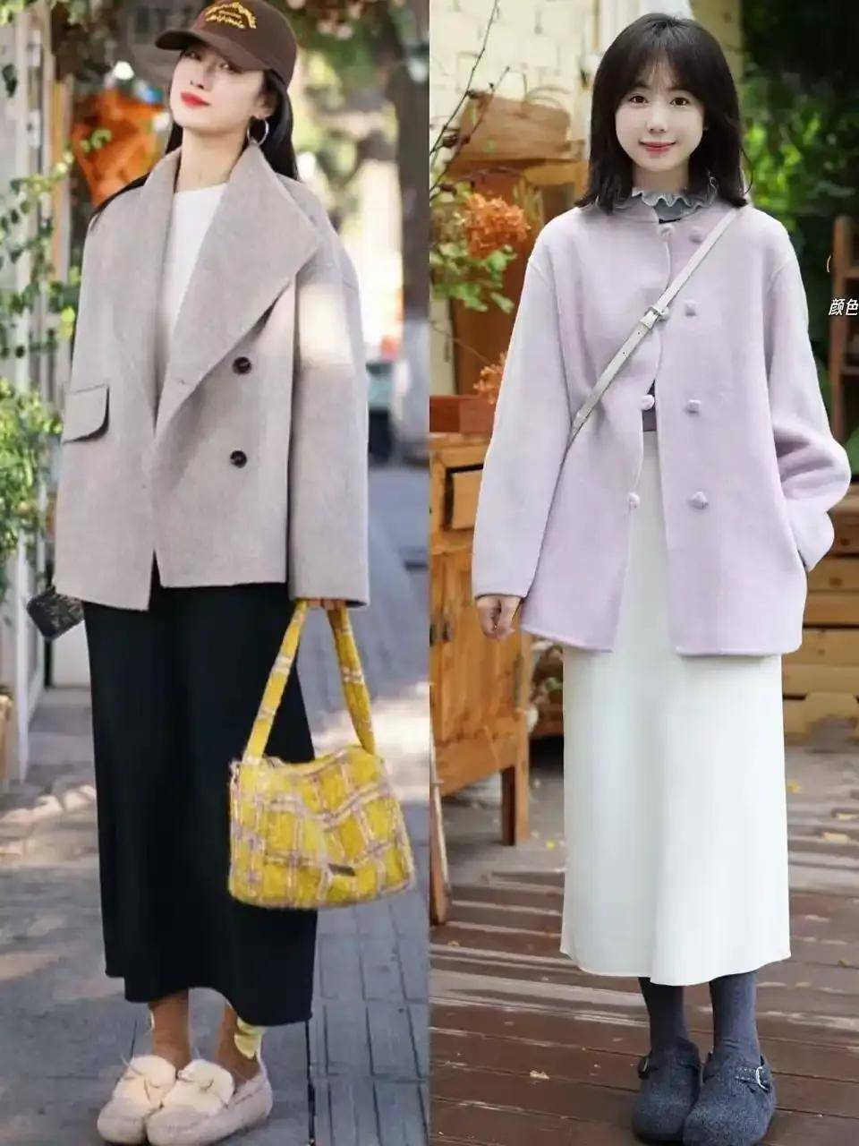 第一章节,短大衣搭配半身裙,优势分析Tips①:灰色短大衣,百搭耐看