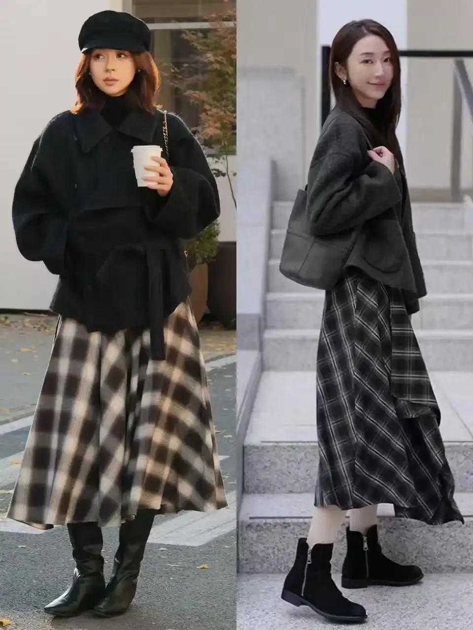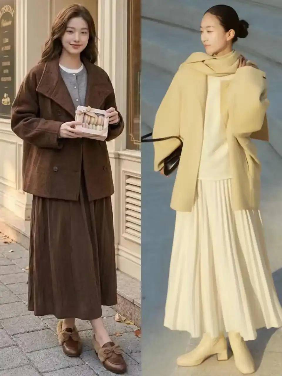 若想打破沉闷,不妨以一身焦糖棕针织与百褶裙,晕染出醇厚的暖意; 亦或是换上灰衫与格纹伞裙,在极简中勾勒出英伦的雅致。 这般穿搭,不挑肤色,不限年龄,只留一份岁月静好的从容与高级。