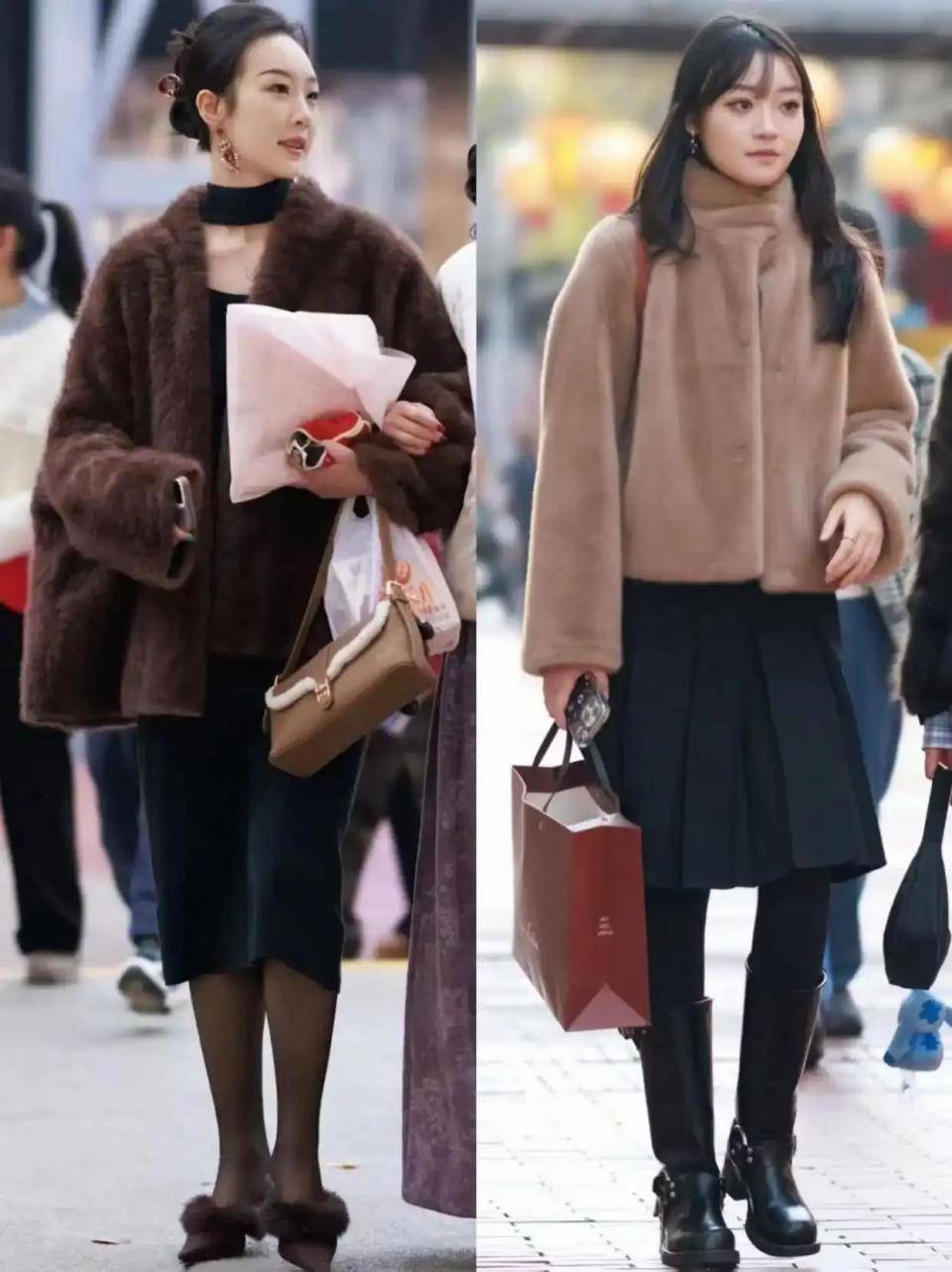 冬日的贵气,往往藏在皮草的光泽里,但切记要选短款,方能留住身形的轻盈。 然而,若棕色皮草遇上质感平平的灰裙与雪地靴,那份高级感便会瞬间折损。